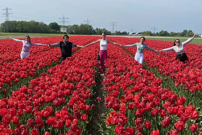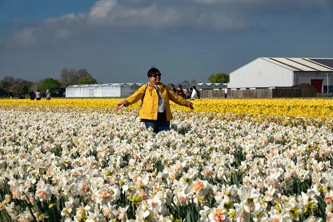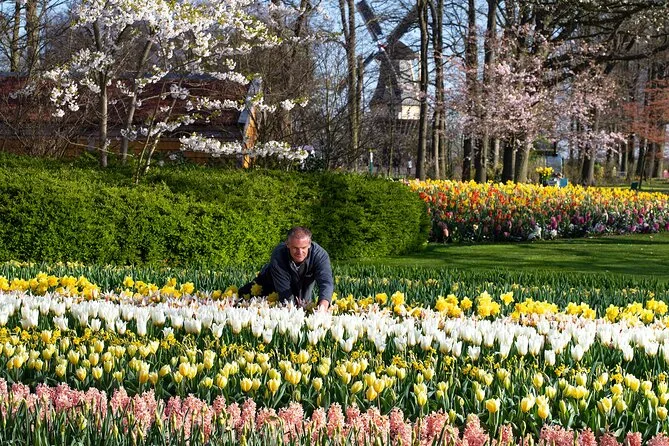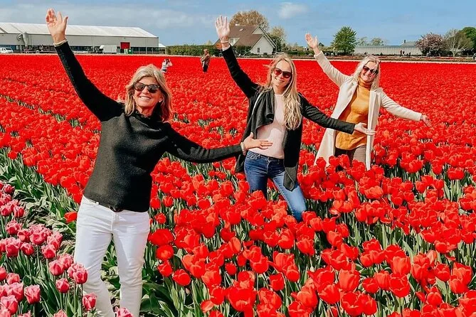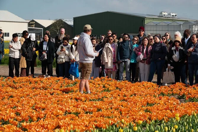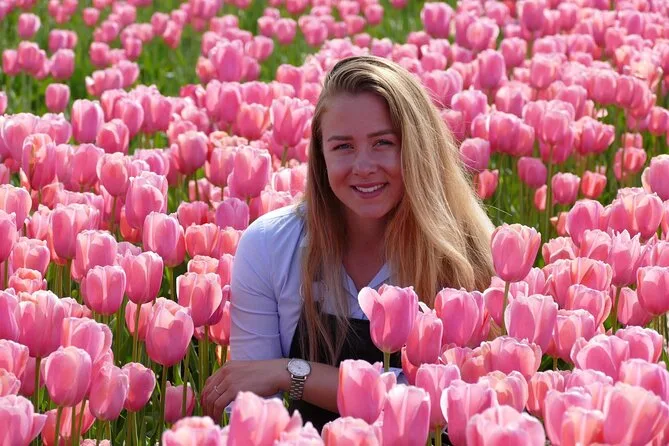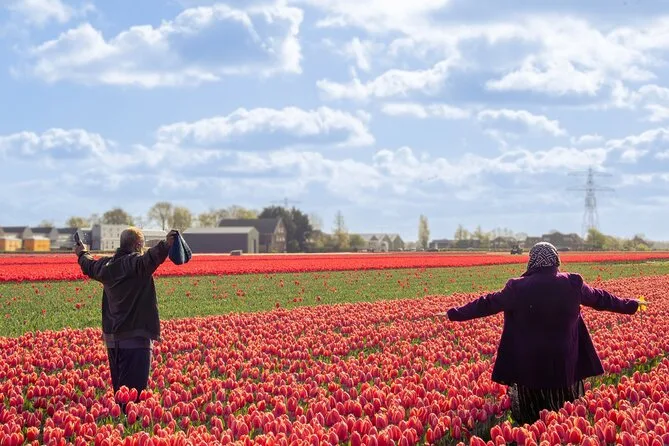 Seu dia inclui transporte com pickup no centro de Amsterdam no “This is Holland”, visita guiada na fazenda de tulipas do Daan & Anja (com tempo para provar torta de maçã fresquinha), transporte em ônibus com ar-condicionado pelos campos de flores, passeio de barco de uma hora pelos moinhos e vilarejos históricos, entradas para os Jardins de Keukenhof e um mapa oficial para você se perder entre milhões de flores antes de voltar para Amsterdam com conforto.