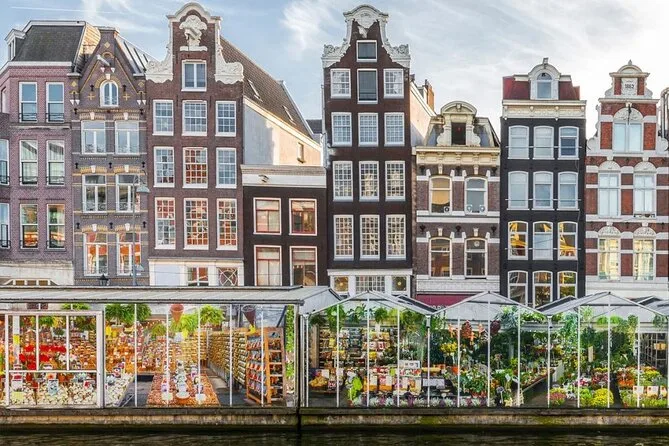 Sim, o roteiro inclui paradas no mercado de flores Bloemenmarkt e vistas do rio Amstel.