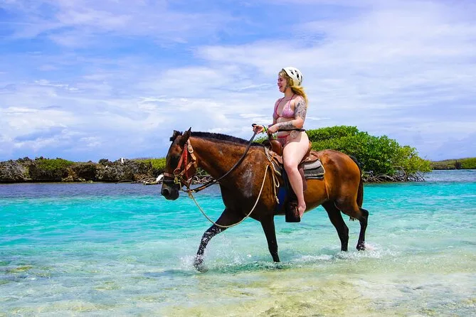 A trilha serpenteava entre manguezais tão próximos que dava pra ouvir a água batendo nas raízes. Tinha uns caranguejos azuis correndo pra todo lado — Luis os chamava de “soldadinhos” e riu quando um tentou subir na minha bota. Cavalgamos até as águas rasas em Tortuga Point, com a água batendo nos joelhos da Luna. Meus sapatos ficaram encharcados, mas, sinceramente, foi até refrescante no calor. Alguém do outro grupo tentou tirar uma selfie com um pelicano e quase deixou o celular cair na lagoa — clássico.