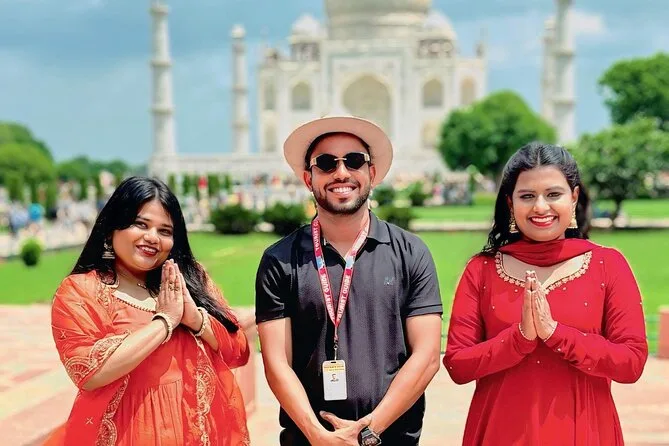 Seu dia inclui transporte privativo em carro com ar-condicionado, com busca e retorno em qualquer ponto de Delhi ou cidades próximas, ingressos para os monumentos se selecionados na reserva, guia local profissional durante todo o passeio em Agra, água mineral grátis durante a viagem, pedágios e impostos pagos pelo motorista—e se escolher, um almoço buffet generoso em hotel 5 estrelas antes do retorno confortável para casa.