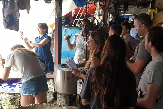 Seguimos pelo trânsito até Mani Bhavan, a antiga casa de Gandhi. O lugar é tranquilo, parece que o tempo desacelera ali. Um leve cheiro de sândalo e papel antigo no ar. O guia mostrou o fuso de fiar e cartas de Gandhi — ele morou ali por anos. Depois fomos para Dhobi Ghat. Nunca vi nada igual — centenas de homens batendo roupa em tanques de concreto, camisas estalando ao vento. O ritmo do trabalho deles é quase hipnotizante. Sameer explicou que algumas famílias trabalham ali há gerações.