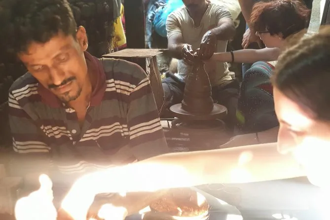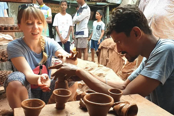 Passamos por Churchgate e pela Rajabai Clock Tower — Sameer disse que o relógio toca a cada quinze minutos, mas perdemos por poucos segundos. O Tribunal Superior de Bombay parece cenário de filme britânico. A estação Chhatrapati Shivaji Terminus é enorme e movimentada; trens chegam e partem a todo momento. Última parada: Dharavi. Não era o que eu esperava — pequenas oficinas por todos os lados, gente fazendo cerâmica, artigos de couro e até brinquedos de plástico. Nosso guia conhecia vários moradores pelo nome. A energia ali é intensa — todo mundo trabalhando, conversando, se movimentando rápido. É um lado de Mumbai que a maioria dos turistas nunca vê.