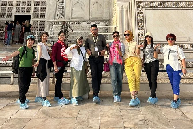 Você vai sair de Delhi num carro privativo com motorista que fala inglês, evitar filas no Taj Mahal e no Forte de Agra, ouvir histórias locais com o guia, almoçar em buffet num hotel 5 estrelas em Agra e conhecer as delicadas esculturas do Baby Taj. Um dia que mistura momentos tranquilos e muita história — e que pode ficar com você por muito tempo.
