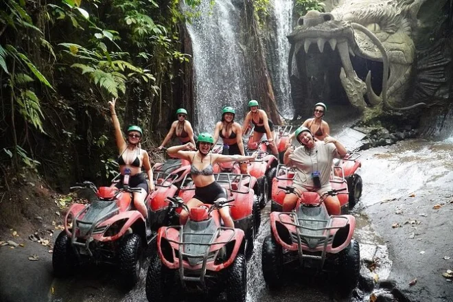 Seu dia inclui transporte do hotel em Ubud ou região próxima, todo o equipamento de segurança como capacete e botas (com seguro), cerca de 1h30 pilotando ATV por trilhas na selva passando por arrozais e cachoeiras com um guia local amigável, entrada para a trilha da Caverna do Dragão, acesso a vestiários e chuveiros após o passeio (confie, você vai querer), água mineral durante todo o tempo e um almoço simples e local antes de voltar.