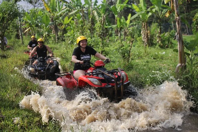 Seu dia inclui transfer privado de ida e volta se selecionado na reserva, todo o equipamento necessário para quadriciclo e rafting (capacetes, botas, coletes salva-vidas), acompanhamento completo dos guias locais em cada atividade, uso de vestiários com chuveiros e toalhas no acampamento, seguro durante as atividades, além de um almoço buffet indonésio servido entre as aventuras antes do retorno ao hotel.