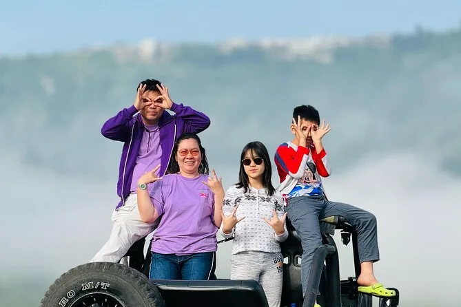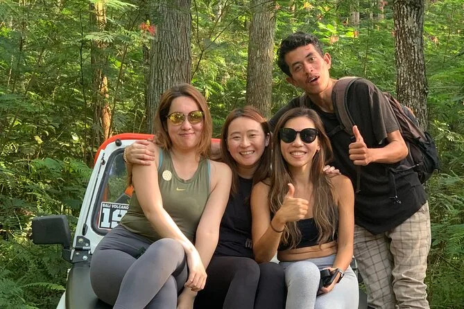 Até encontrarmos nosso guia, Wayan, com aquela calma típica dos balineses — parecia que nada o apressava. Ele explicou que o 4x4 nos levaria por antigos fluxos de lava das erupções de 1963 e até anteriores. O ar tinha um leve cheiro de enxofre misturado com grama molhada enquanto balançávamos por aquelas trilhas negras. Em um momento, ele parou para mostrarmos uma caverna escondida no meio da lava — confesso que quase não vi a entrada até ele apontar. Lá dentro, o ambiente era fresco e ecoava; meus passos rangiam na areia vulcânica.