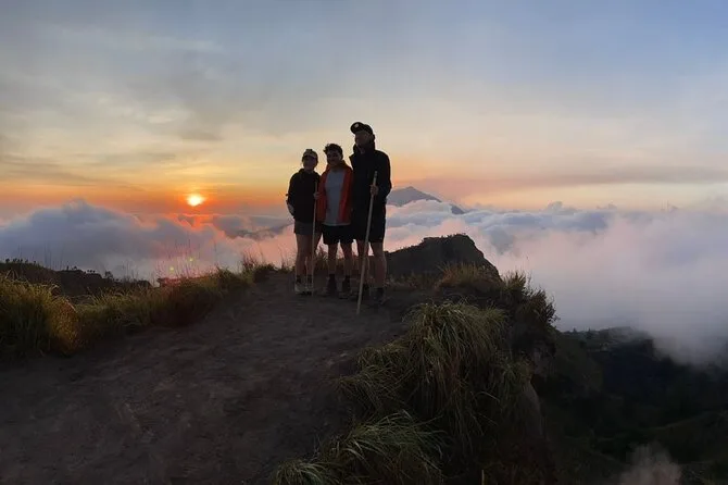 Seu dia começa com transporte do hotel nas áreas de Kuta, Seminyak, Canggu, Sanur, Ubud ou Kintamani, com todas as taxas incluídas. Um guia local que fala inglês acompanha a subida ao Monte Batur, fornecendo lanternas e bastões de caminhada; no topo, você recebe um café simples com chá ou café quente antes de descer juntos — água mineral está incluída durante o percurso.