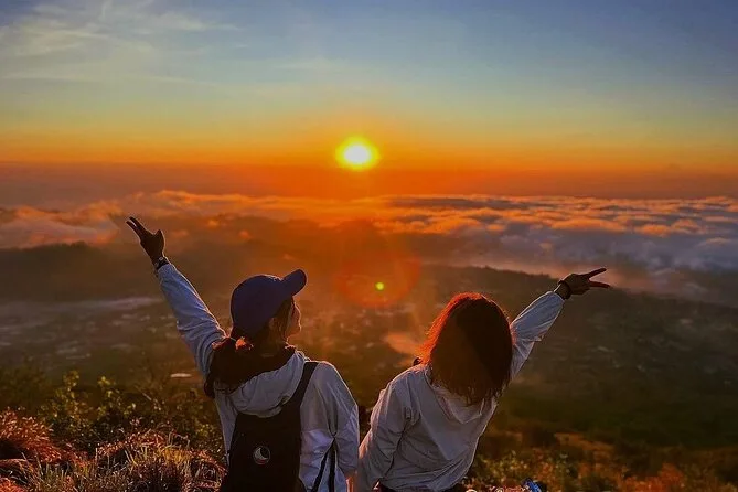 Comece a trilha ao Monte Batur no escuro, guiado por um local com lanterna. No topo, tome chá quente e um café simples enquanto o dia nasce sobre o Lago Batur. Explore a cratera e volte com transporte do hotel incluso, garantindo uma experiência que fica para sempre.