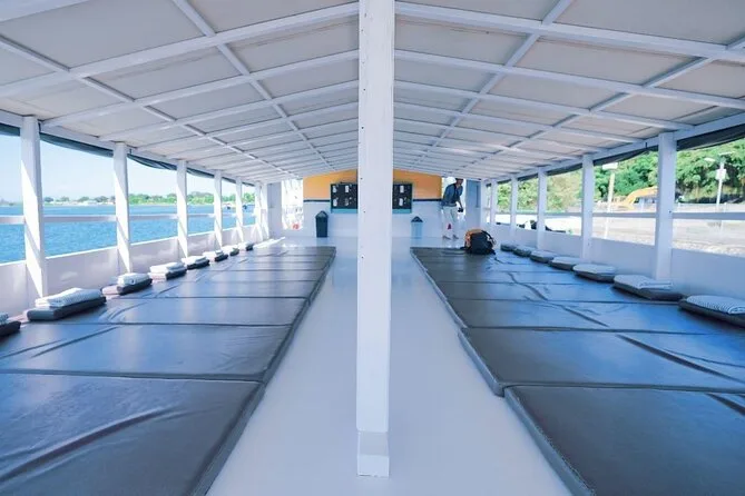 O ingresso cobre comida, água e acomodação em deck class; upgrades para cabines podem ser reservados antecipadamente.