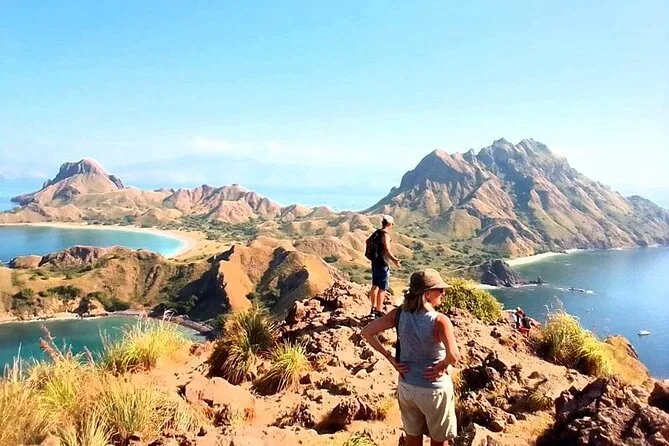 O roteiro inclui paradas nas ilhas da região de Komodo, como Padar e Rinca, onde é possível ver dragões de Komodo.