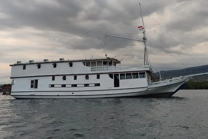 O ingresso inclui todas as refeições a bordo e água durante a viagem; você dorme em deck class, a menos que reserve um upgrade para cabine no pacote. Todos os pontos de snorkel, trilhas guiadas (incluindo a Ilha Padar), nado com tubarões-baleia e visitas à Pink Beach e Rinca fazem parte do trajeto entre Lombok e Flores.