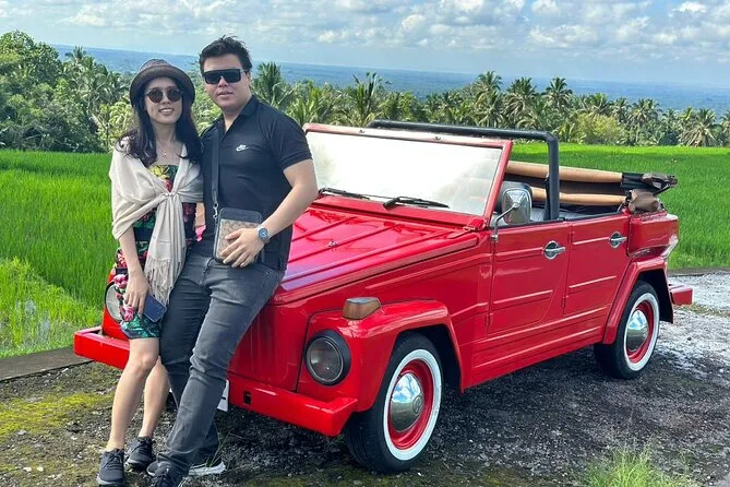 Você terá transporte privado em um Volkswagen Safari clássico com um motorista que fala inglês e conhece Bali como ninguém. Os ingressos para todos os locais estão incluídos, assim como taxas de estacionamento e combustível — sem custos escondidos. Todos recebem água engarrafada e há um almoço buffet indonésio com vista para os terraços de arroz de Jatiluwih.