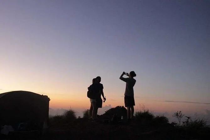 O céu muda do preto para um azul profundo conforme nos aproximamos do cume. Minhas pernas queimam, mas mal percebo—todos estão focados no primeiro toque de laranja no horizonte. No topo, o lugar está cheio, mas acolhedor; pessoas compartilham biscoitos e trocam histórias enquanto o vapor sobe de pequenas fissuras no chão. O nascer do sol é surreal—nuvens abaixo de nós, o Lago Batur brilhando em dourado e até o Monte Agung espiando através da névoa matinal. Wayan distribui ovos cozidos no vapor do próprio vulcão (têm um sabor levemente defumado). Faz frio aqui em cima, então traga um casaco se vier.