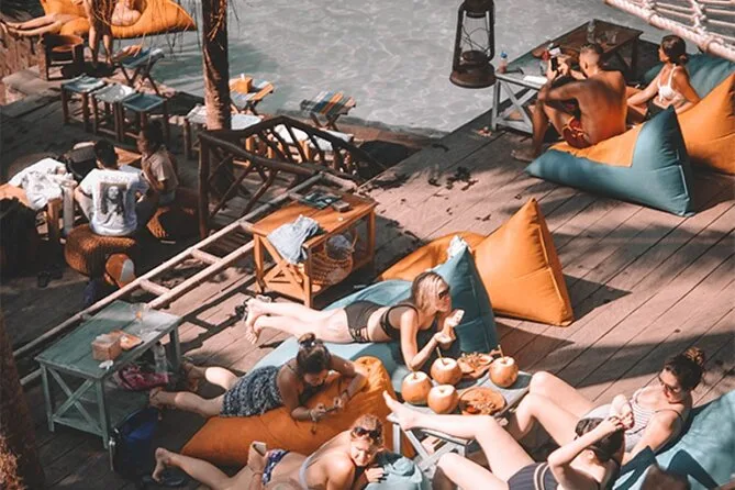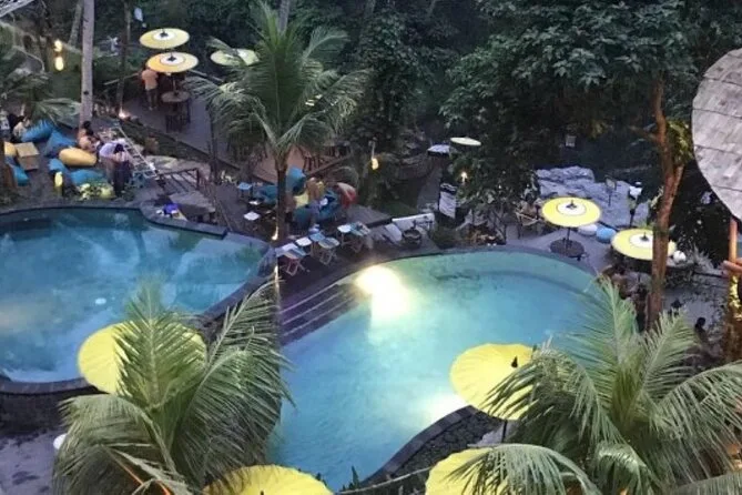 Encerramos no D’tukad River Club, perto de Tegenungan—um lugar descontraído com piscinas em níveis que dão vista para um rio agitado lá embaixo. Uma música suave toca e famílias relaxam perto dos toboáguas ou flutuando rio abaixo em boias. Peço um chá gelado no bar e fico só observando libélulas cortando a superfície enquanto minhas pernas descansam na água fresca.