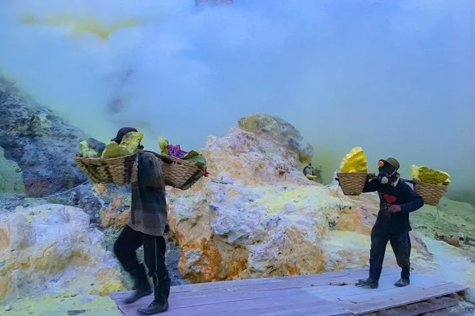 Trilha Noturna Kawah Ijen Blue Fire e Tour de Mineração de Enxofre