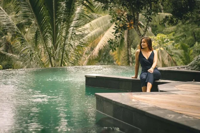 Seu dia privado inclui busca e retorno ao hotel em van com ar-condicionado; todas as entradas; água mineral; almoço no D’Alas com vista para a natureza de Ubud; visitas guiadas à Floresta dos Macacos, Terraços de Arroz de Tegalalang (com explicação do sistema Subak), templo Tirta Empul para ritual de purificação; tempo na Cachoeira Tegenungan; além do motorista-guia que ajuda a tirar muitas fotos—inclusive no balanço na selva (roupas inclusas).