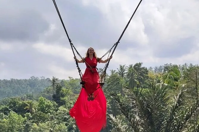 Seu dia inclui transporte privado com ar-condicionado e água mineral; traslado de ida e volta para hotéis ou vilas em toda a região sul de Bali; todas as taxas de entrada; além de um autêntico almoço balinês no d’Alas Warung antes do retorno confortável após explorar templos e cachoeiras juntos.