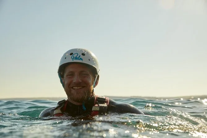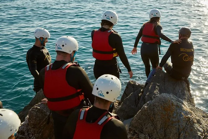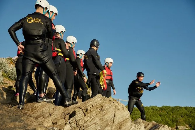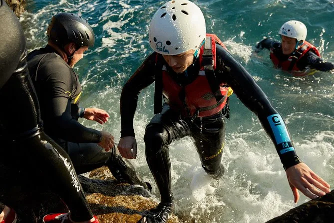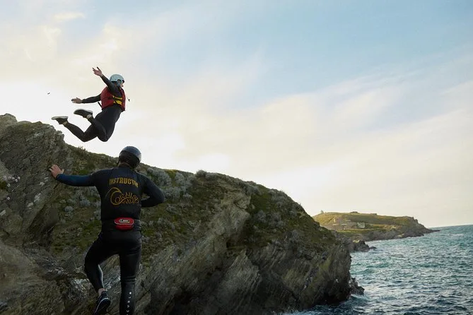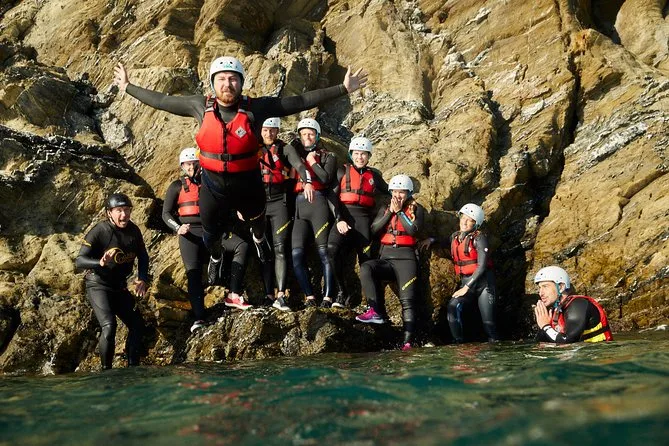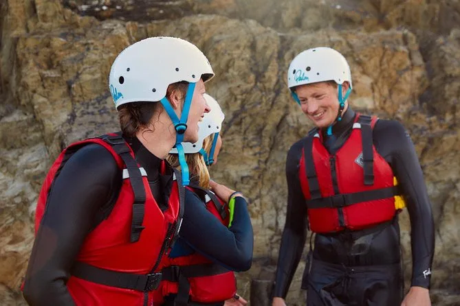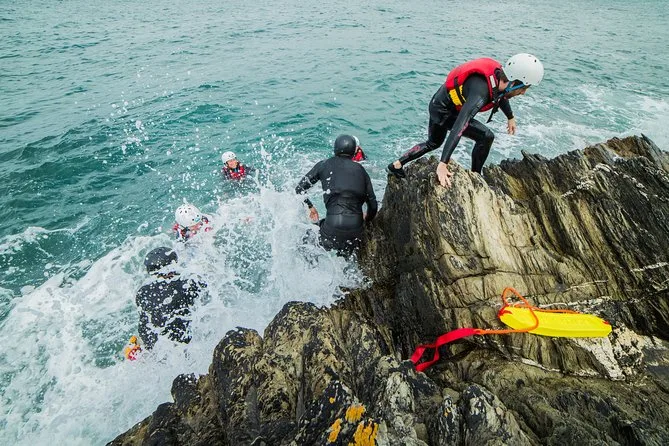 Seu dia inclui todo o equipamento de segurança e a orientação profissional para o coasteering em Newquay — só precisa levar você (e talvez um pouco de coragem). Guias locais qualificados vão acompanhar cada nado, escalada e exploração de cavernas.