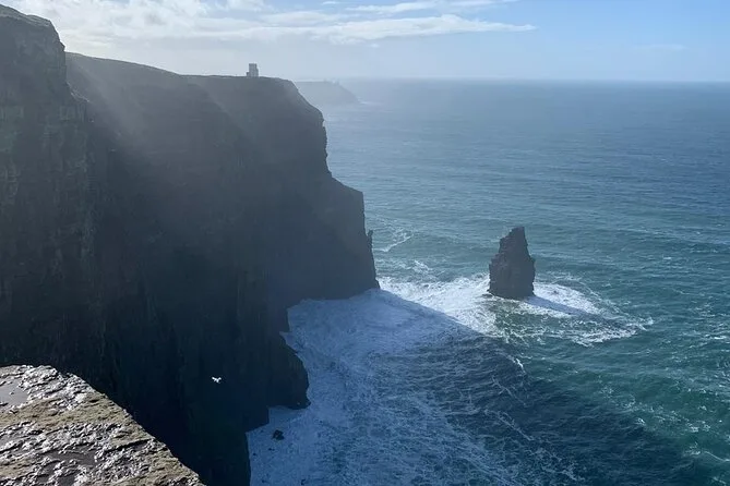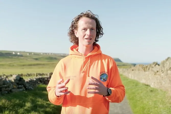 Seu dia inclui uma caminhada em grupo pequeno guiada por um local que fala inglês, várias paradas para histórias e fotos, e transporte de volta a Doolin após chegar ao mirante das Cliffs of Moher — a entrada no centro de visitantes está incluída quando disponível.