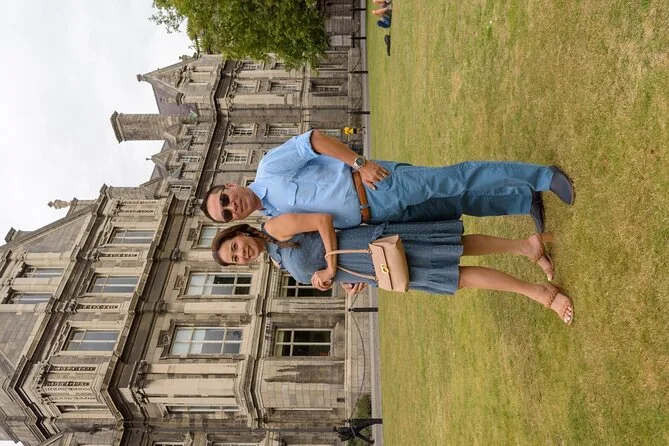 Começamos nosso ensaio bem na frente do Dublin Castle. É curioso — ao passar por aquelas paredes grossas de pedra, dá para sentir os séculos de história no ar. Nosso guia, que conhecia todos os melhores ângulos, apontou um arco tranquilo onde a luz da manhã batia na medida certa. Lembro do cheiro leve de chuva sobre os paralelepípedos antigos e como a cidade pareceu silenciar por um instante enquanto posávamos. Mesmo se você não curte muito fotos, ali é fácil relaxar. O guia tinha um jeito de nos fazer rir, capturando aqueles olhares e sorrisos que pareciam verdadeiros, nada forçado.