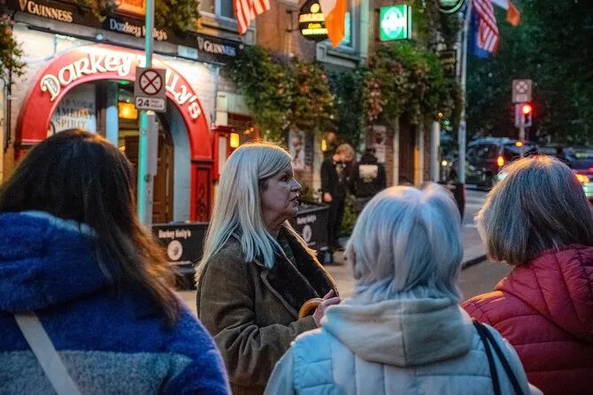 Sua noite inclui um tour guiado a pé pelos cantos assombrados de Dublin com um especialista local credenciado; você vai explorar ruas históricas do Temple Bar até St Stephen’s Green, com paradas em marcos medievais e cemitérios assustadores — tudo com acessibilidade para cadeirantes, para que todos possam participar.