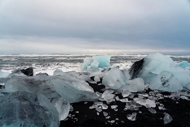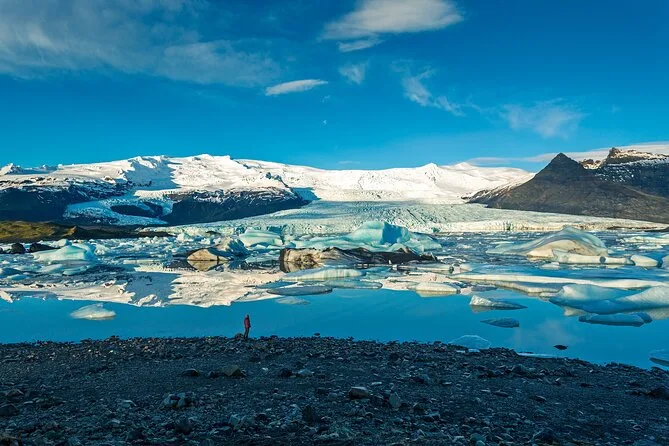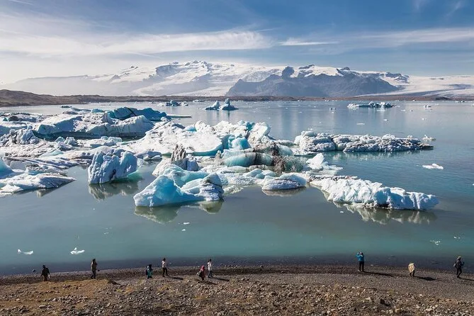 Seu dia inclui transporte com pickup e drop-off em Reykjavik (ou porto de cruzeiros, se selecionado), guia local profissional contando histórias em cada parada — desde cachoeiras até a lagoa glaciar e Diamond Beach — com WiFi a bordo e tempo livre para explorar ou almoçar antes do retorno à noite.