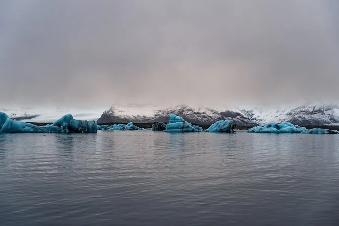 Você vai sair de Reykjavik pela costa sul da Islândia com um guia local, parando para cafés, cachoeiras poderosas como Skógafoss e almoço com vista para os glaciares. Na Lagoa Glaciar Jökulsárlón e na Diamond Beach, vai observar o gelo milenar flutuando sobre a areia preta — uma magia tranquila que fica na memória por dias.