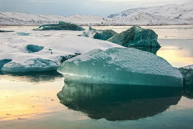 Você vai sentir o coração selvagem da Islândia nesse passeio de um dia saindo de Reykjavik: deslize entre icebergs antigos na lagoa glacial, caminhe pela areia preta da Diamond Beach, almoce na vila de Vík e se molhe atrás da cachoeira Seljalandsfoss — tudo com um guia local que dá vida a cada parada.