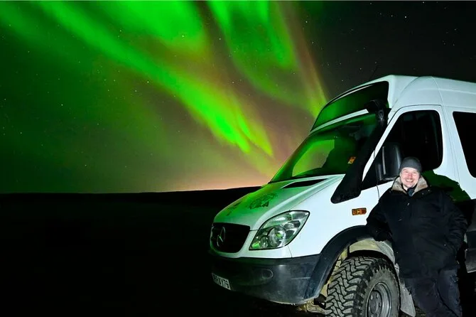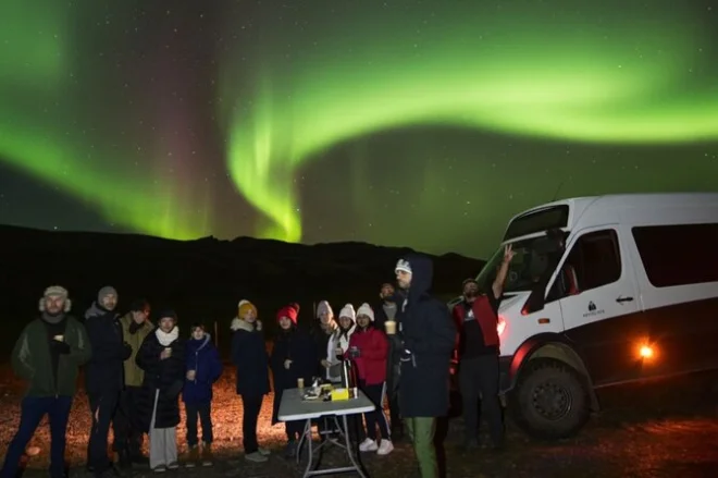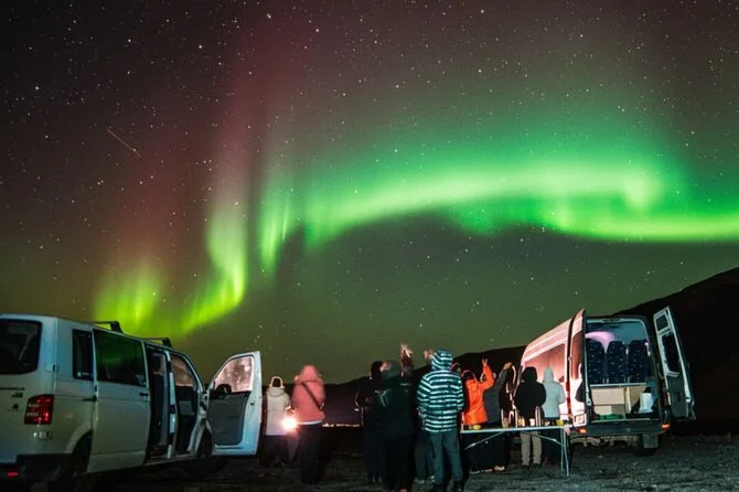 Saia de Reykjavik em um 4x4 pequeno com um guia local que vai buscar o melhor céu limpo. Aqueça-se com chocolate quente e doces enquanto espera a Aurora Boreal — e o guia ainda ajuda a tirar fotos incríveis. Risadas, histórias e aqueles momentos de silêncio sob o céu selvagem da Islândia que ficam na memória.
