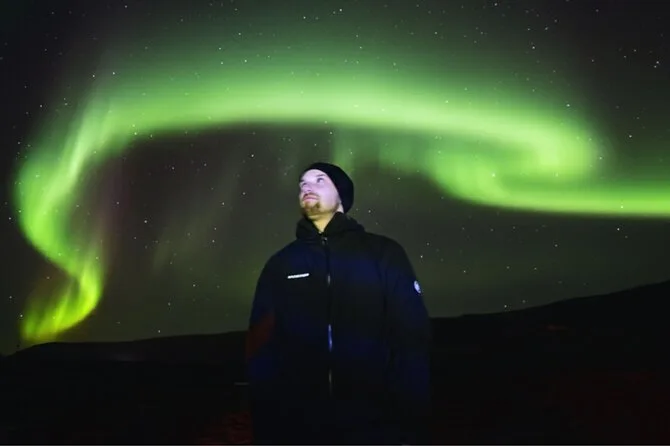 O guia vai ajudar você a capturar fotos da aurora durante o passeio.