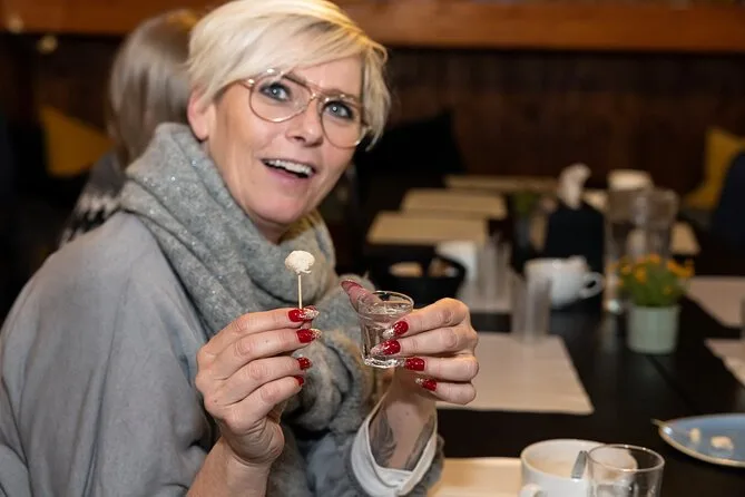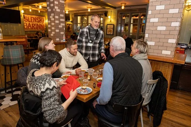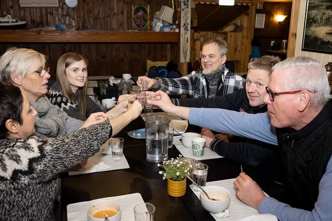 Seu dia inclui várias degustações locais—da sopa de frutos do mar no porto aos famosos cachorros-quentes de cordeiro—além de petiscos de lojas ou feiras, se estiverem abertas. Você termina no restaurante Dass, perto da Hallgrimskirkja, onde prova delícias tradicionais (incluindo tubarão fermentado) acompanhadas de uma bebida islandesa à sua escolha antes de se despedir no centro de Reykjavik.