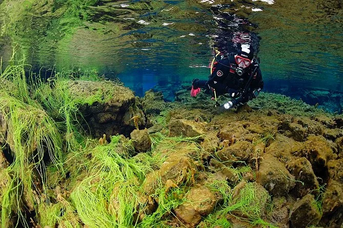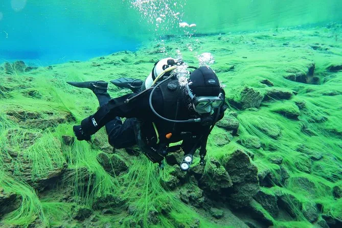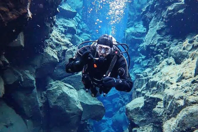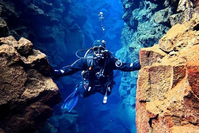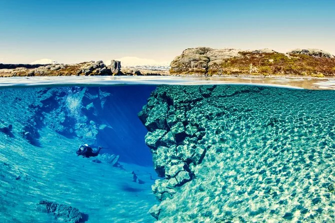 Seu dia inclui transfer do hotel em Reykjavik (ou encontro no Terminal de Ônibus BSI, se preferir), todo o equipamento de mergulho com roupa seca e roupa térmica, entrada para Silfra, acompanhamento de um instrutor PADI certificado que ajuda com o equipamento e as instruções de segurança, uso de uma van aquecida para trocar de roupa antes e depois do mergulho, além de chocolate quente e biscoitos para esquentar antes de voltar para a cidade.