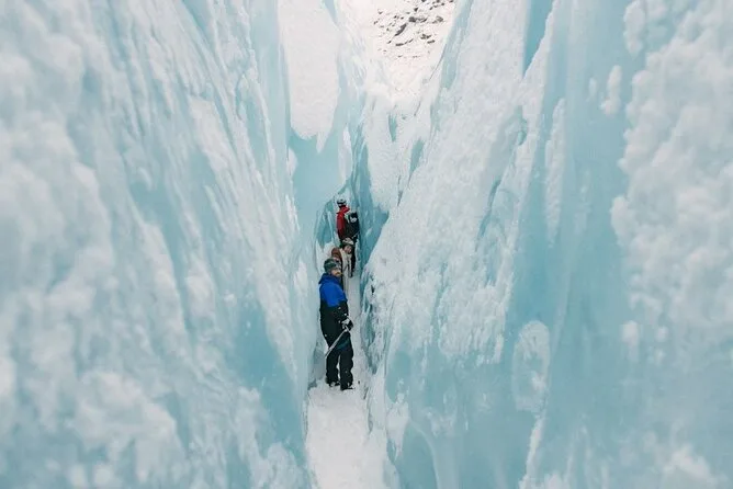 Seu dia inclui um curto trajeto de carro de Skaftafell até a saída do glaciar Vatnajökull, todo o equipamento necessário como capacetes e arnês ajustados pelo guia certificado, além de café e chocolates compartilhados com o grupo antes de voltar aquecido.