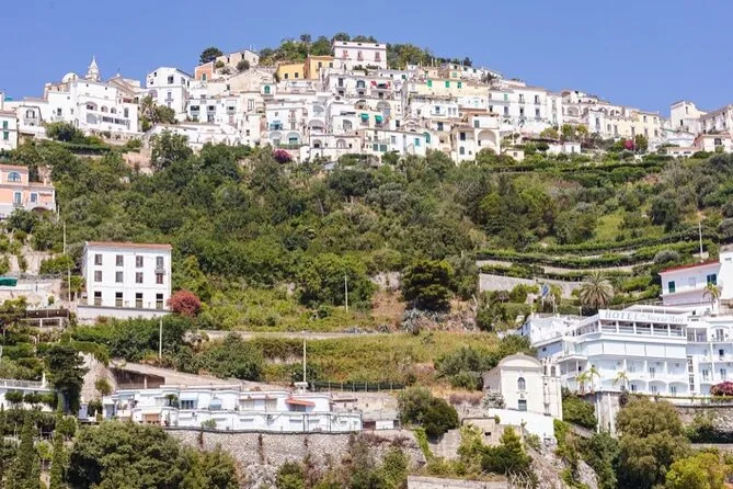 O trajeto inclui várias paradas; o tempo varia, mas cobre Vietri a Amalfi em um dia.
