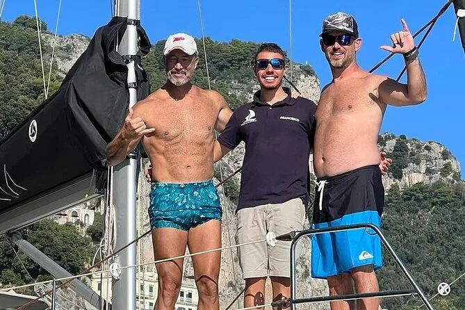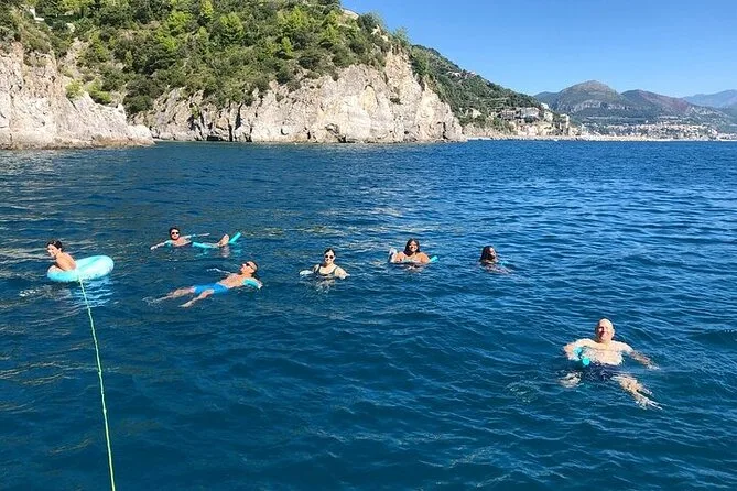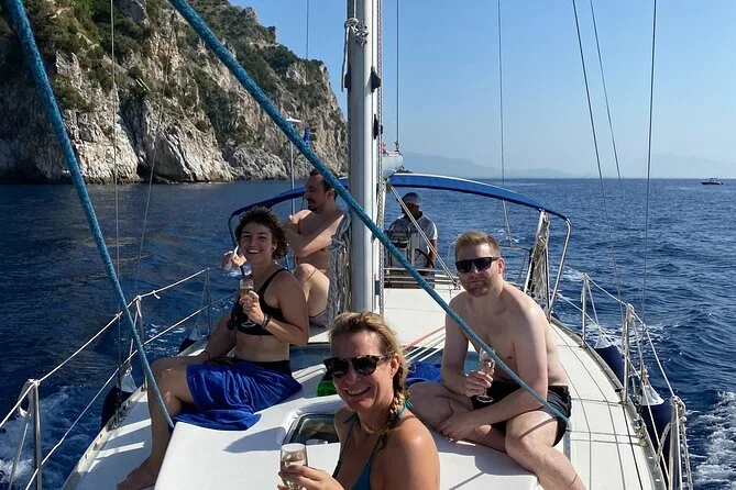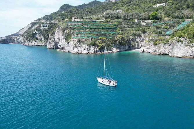 Seu dia inclui bebidas de boas-vindas ao embarcar em Salerno, várias chances de nadar em trechos escondidos entre Vietri e Amalfi, um almoço leve e descontraído com sobremesa e limoncello servido no convés antes de voltar navegando com o vento, se as condições permitirem.