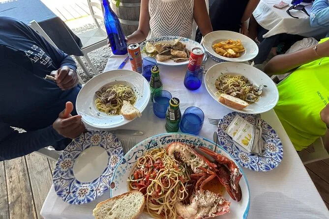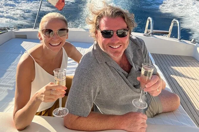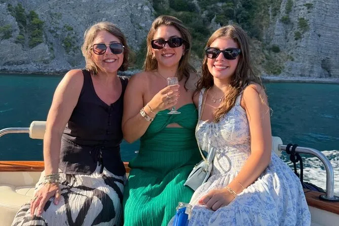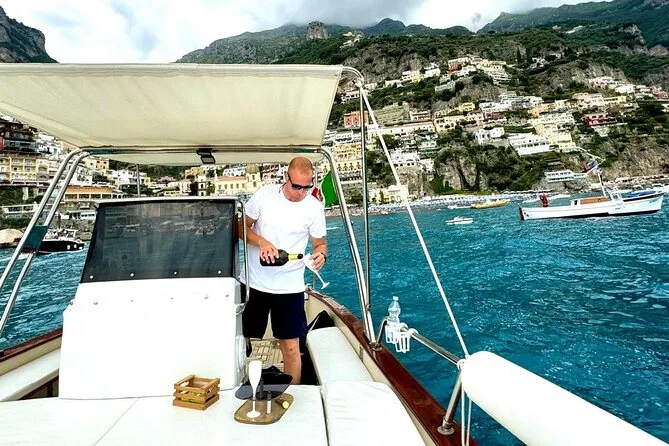 Seu dia inclui transporte no porto escolhido (Positano, Praiano ou Amalfi), combustível e taxas portuárias pagos pelo capitão local, uso de toalhas e máscaras de snorkel para as paradas de nado (exceto barcos com deck aberto), além de água mineral, refrigerante, cerveja e prosecco para aproveitar enquanto navega entre vilarejos e enseadas da costa.
