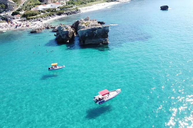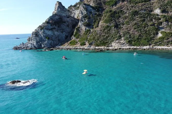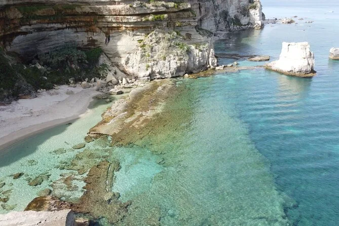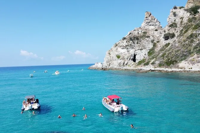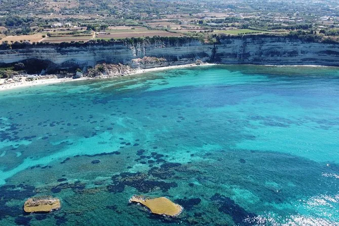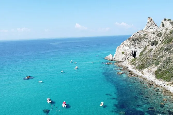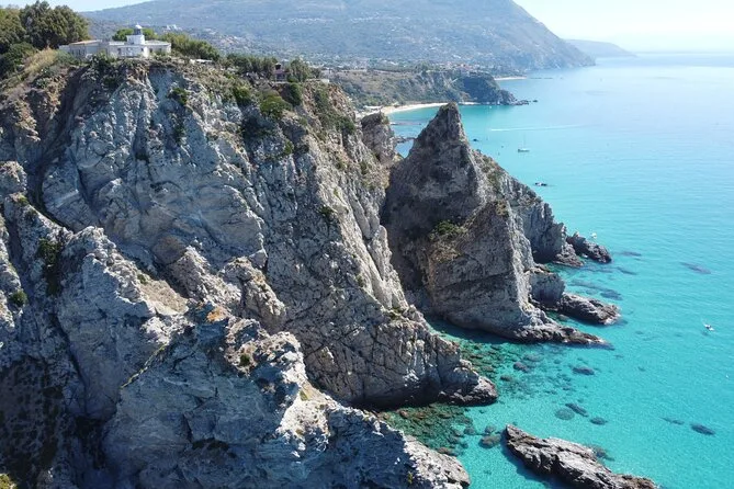 Você vai visitar a Baía de Grotticelle, a praia Praia i Focu (acessível só pelo mar), a caverna Grotta dello Skeleton, a Baía de Riaci, as ruínas de Formicoli e ver as falésias e o mosteiro de Tropea.