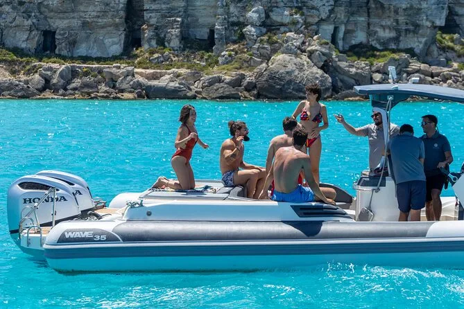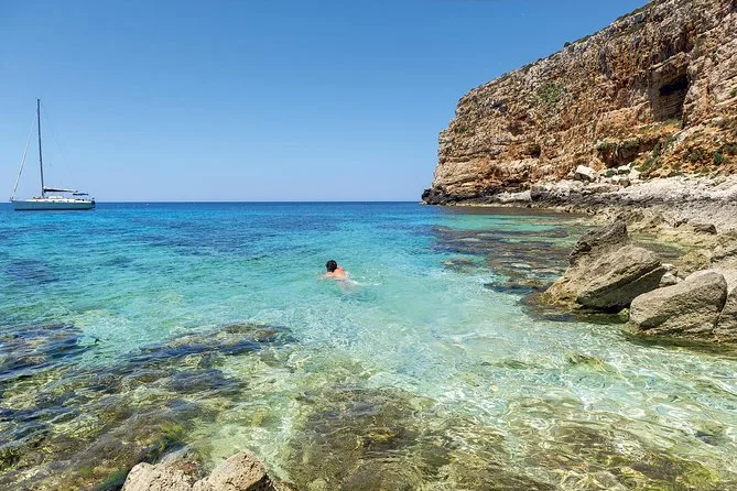 Seu dia inclui saída do porto de Trapani com um grupo pequeno guiado por um local que conta histórias pelo caminho; todas as taxas incluídas; uso do equipamento de snorkel em cada parada para nadar; água mineral, vinho e Coca-Cola servidos a bordo; acesso ao banheiro; além de tempo livre para explorar a vila de Favignana antes do retorno ao entardecer.