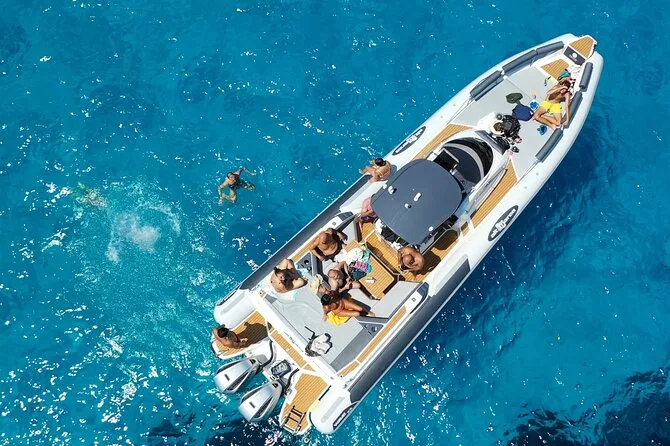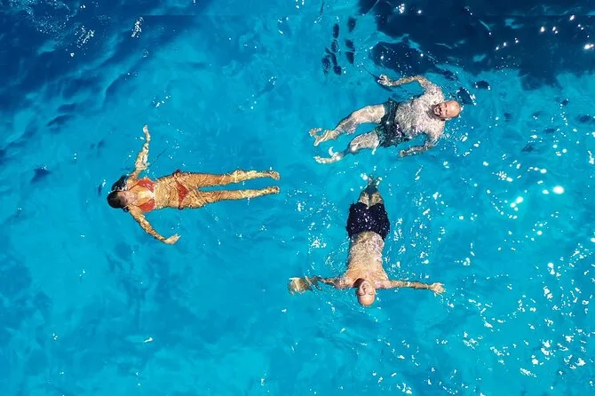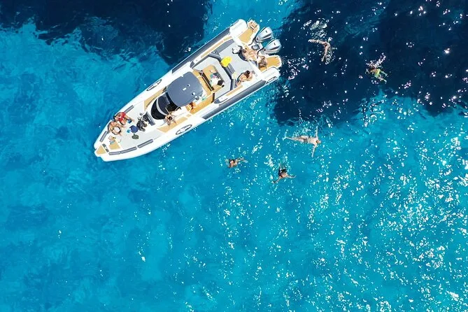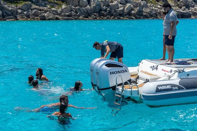 Sim, há várias paradas para nadar e fazer snorkel em baías como Cala Azzurra e Bue Marino.