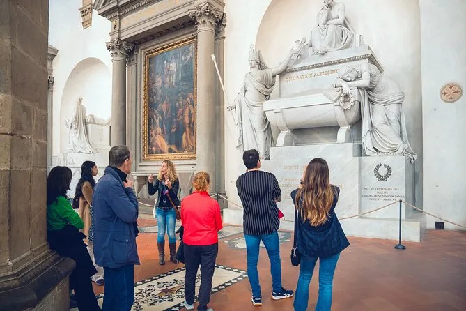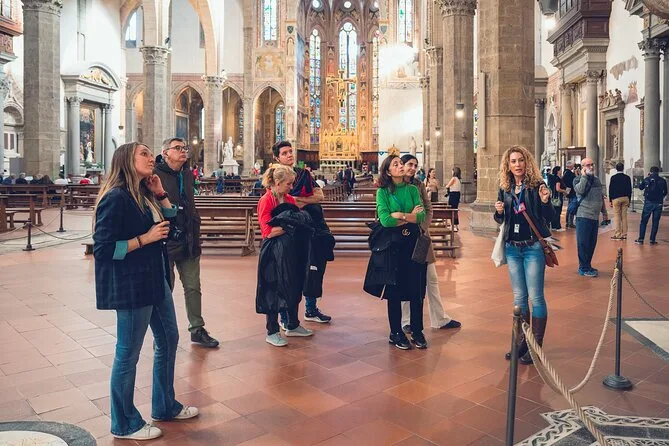 Seu dia inclui ingressos com entrada reservada para a Basílica di Santa Croce (com acesso sem fila), guia local certificado durante todo o passeio, uso de sistema de rádio para ouvir tudo sem precisar se aproximar demais (confie, é muito útil), além de todos os principais destaques da cidade a pé, terminando perto do Palácio Pitti.