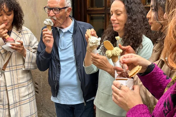 Seu dia inclui degustações guiadas de massas caseiras com lascas de trufa, biscoitos cantucci fresquinhos, amostras de azeite extra-virgem no Mercato Centrale, pratos típicos florentinos e gelato de verdade — tudo com um guia local experiente enquanto você explora o centro de Florença.