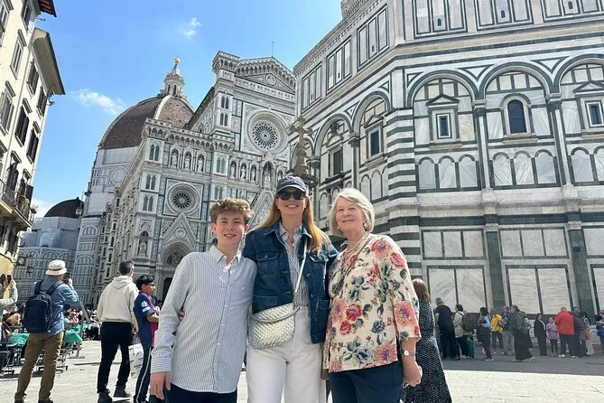 Depois, seguimos por ruas estreitas, passando pela Igreja de San Lorenzo e chegando à luz aberta da Piazza San Giovanni. O Duomo apareceu imponente — maior do que eu imaginava. Giulia apontou detalhes nas portas do Batistério enquanto mordíamos biscoitos cantucci (mais crocantes do que eu esperava). Teve um momento em que todo mundo ficou em silêncio — só mastigando e admirando aquele mármore e o céu. Aí o celular de alguém tocou e a gente riu porque saiu uma música pop totalmente fora de contexto ali.