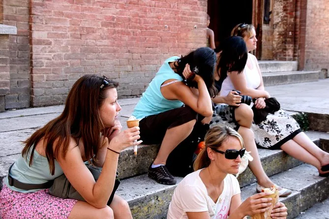 Seu dia inclui o uso de uma cadeira portátil para descansar onde quiser, fones de ouvido para ouvir claramente as histórias da guia historiadora de arte mesmo em praças movimentadas, uma deliciosa degustação de gelato e petiscos durante as pausas—tudo pensado para que você explore os principais pontos de Florença com conforto e no seu ritmo, antes de seguir viagem por conta própria.