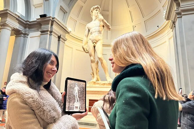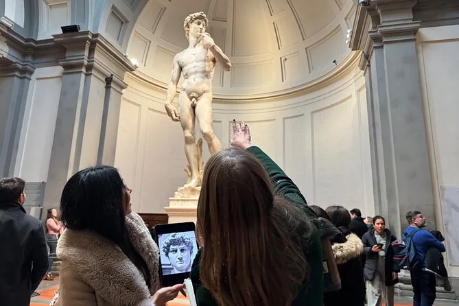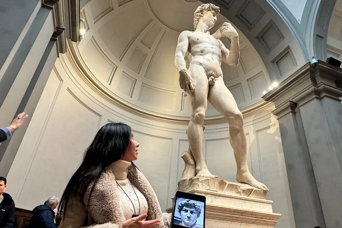 Seu dia inclui ingressos fura-fila para a Galeria Accademia em Florença, comentários especializados do seu guia local (com fones para não perder nada), além de tempo para explorar o David de Michelangelo e tesouros menos conhecidos como instrumentos musicais históricos — tudo em um espaço acessível para todos.