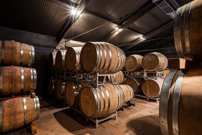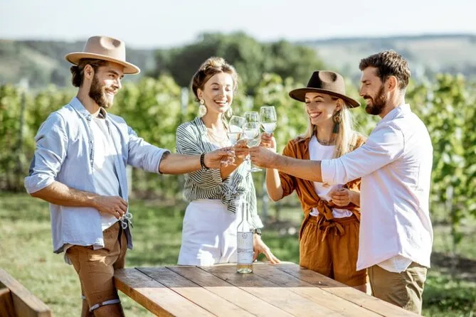 Transporte em van Mercedes com ar-condicionado, água engarrafada, WiFi a bordo e uma garrafa de Prosecco por grupo para o happy hour no retorno.