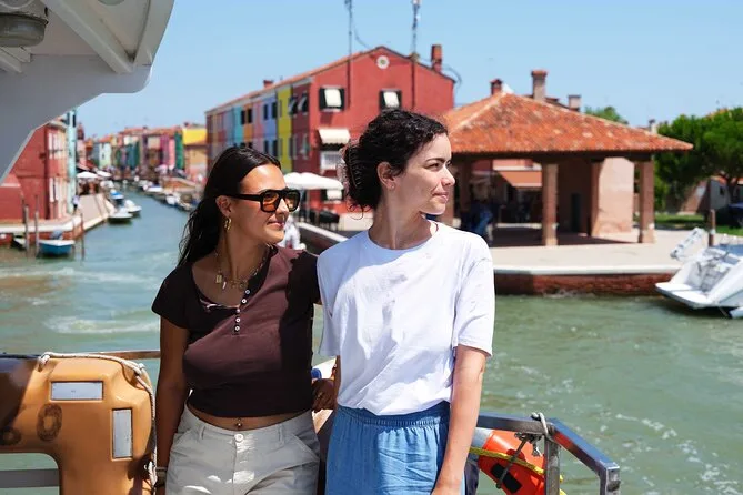 O passeio inclui transporte confortável de barco saindo de San Marco, em Veneza, para as ilhas Murano e Burano, com retorno incluso.