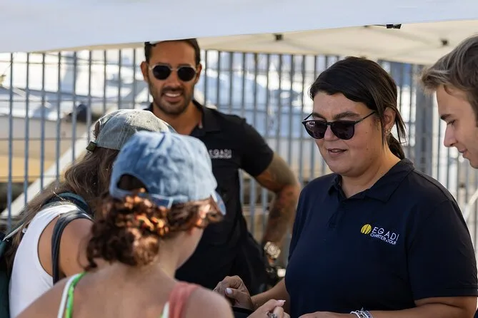 Saia de Trapani com um grupo pequeno e guia local para mergulhar nas baías rosadas de Favignana e explorar o porto tranquilo de Levanzo. Nade em Cala Rossa, caminhe pela cidade de Favignana ou visite os antigos armazéns de atum, e relaxe no convés durante as travessias — com bebidas e equipamento de snorkel incluídos.
