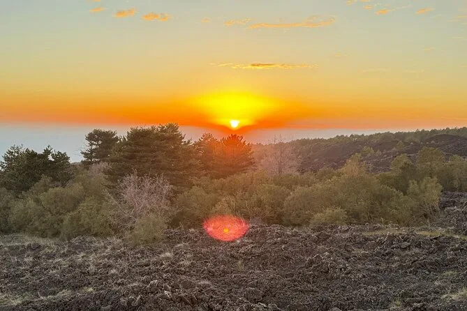 O roteiro é planejado para chegar aos pontos principais do Monte Etna na hora do pôr do sol — o horário varia conforme a estação.