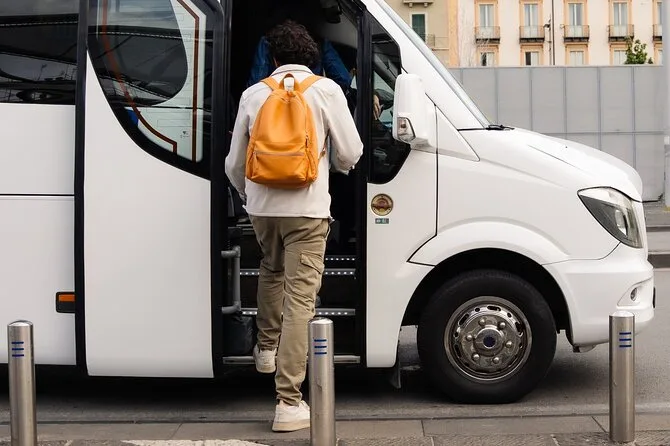 Seu dia inclui ida e volta de trem rápido entre Roma e Nápoles, todos os transfers em ônibus privado entre os locais, ingresso sem fila para o sítio arqueológico de Pompeia com tour guiado por um especialista local, almoço em uma pizzaria napolitana clássica (sim — pizza de verdade), além de passeio a pé e tempo livre no centro de Nápoles antes do retorno de trem.