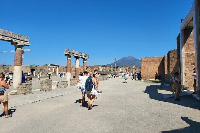 Você vai explorar as ruas cheias de história de Pompeia com um guia local, provar vinhos frescos do Vesúvio durante o almoço em uma vinícola na encosta, e depois subir o Monte Vesúvio para vistas incríveis da cratera e da Baía de Nápoles. Prepare-se para risadas, cinzas nos sapatos — e momentos que ficam para sempre.